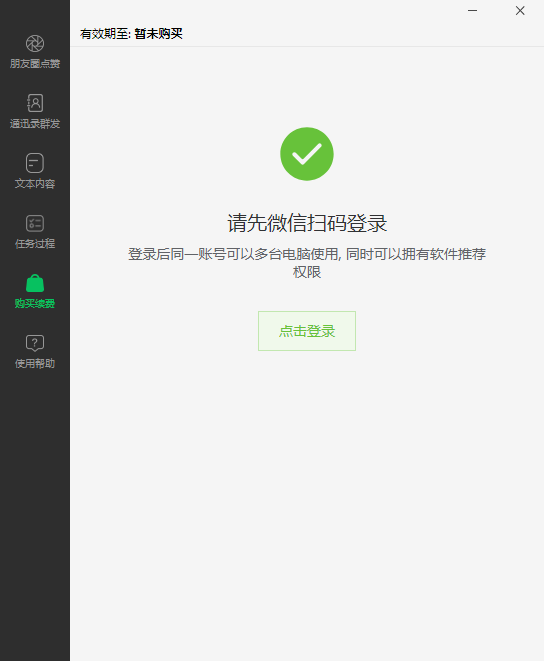 2、第一次打开软件,显示界面如下,需要进行微信登录。