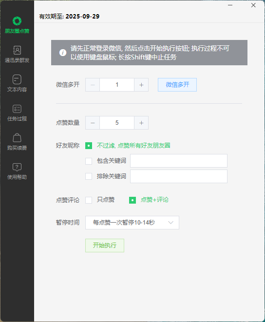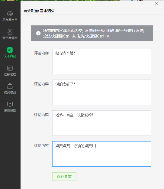 4、购买软件以后,第一步设置朋友圈点赞基础信息。